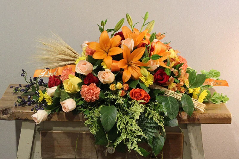 Heartfelt and hand crafted sympathy flowers are a wonderful way to show compassion and support for someone who has lost a loved one. At Blossoming Creations we design a variety of sympathy flower bouquets, funeral sprays, and plant arrangements. Near or far, sending a sympathy bouquet to the bereaved lets them know that you’re thinking of them. We offer free delivery to in-town funerals.